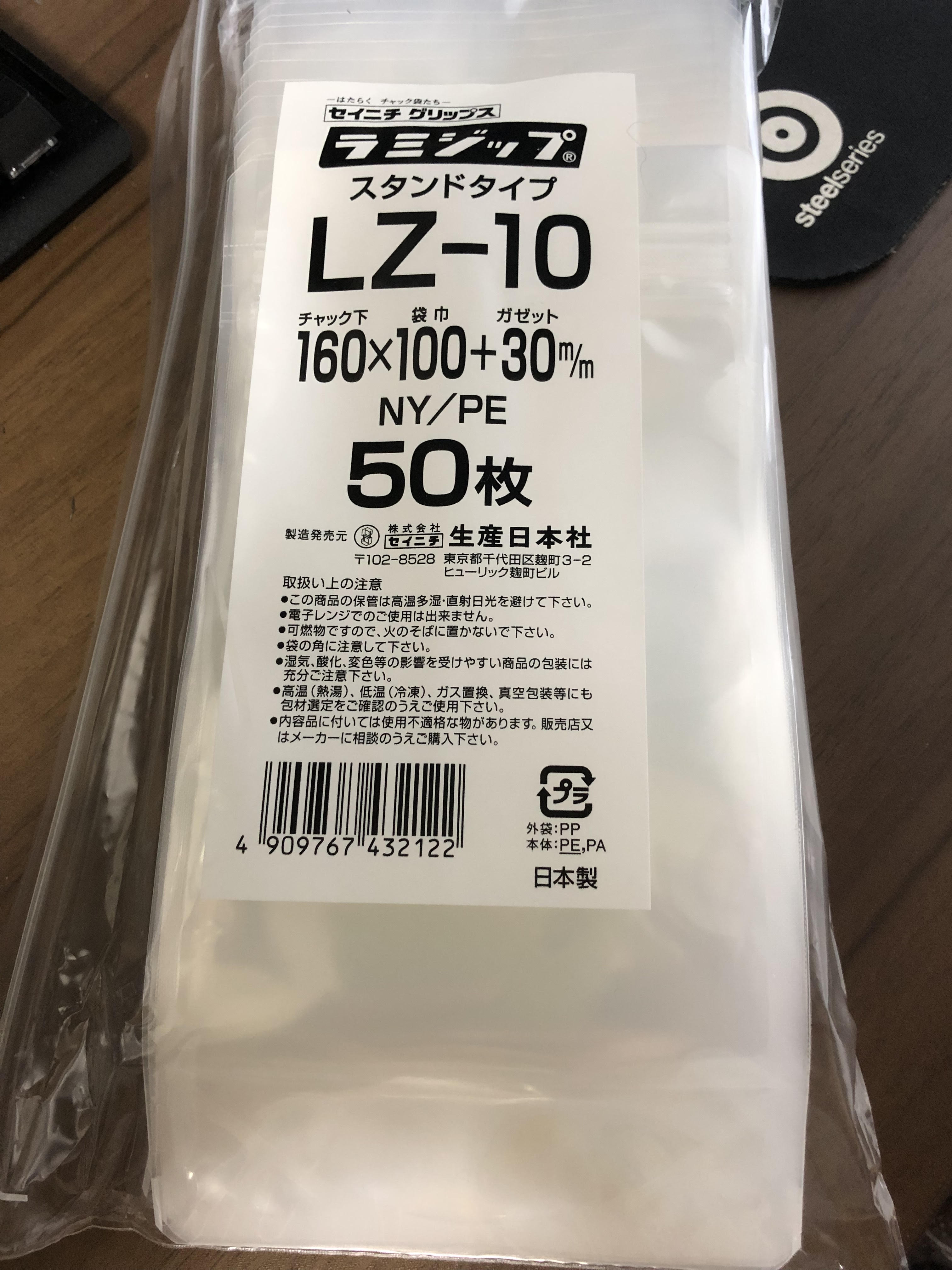 この袋の名前は「ラミジップ」というらしく、実験くんの説明書でも「ラミジップ」と書かれていたのでamazonにて検索したら様々なサイズのラミジップを見つけることができた。実験くんの中にあったサイズではアイマスクとして使うにはあまりにもサイズが小さかったので大きいサイズの袋を購入する必要があった。
