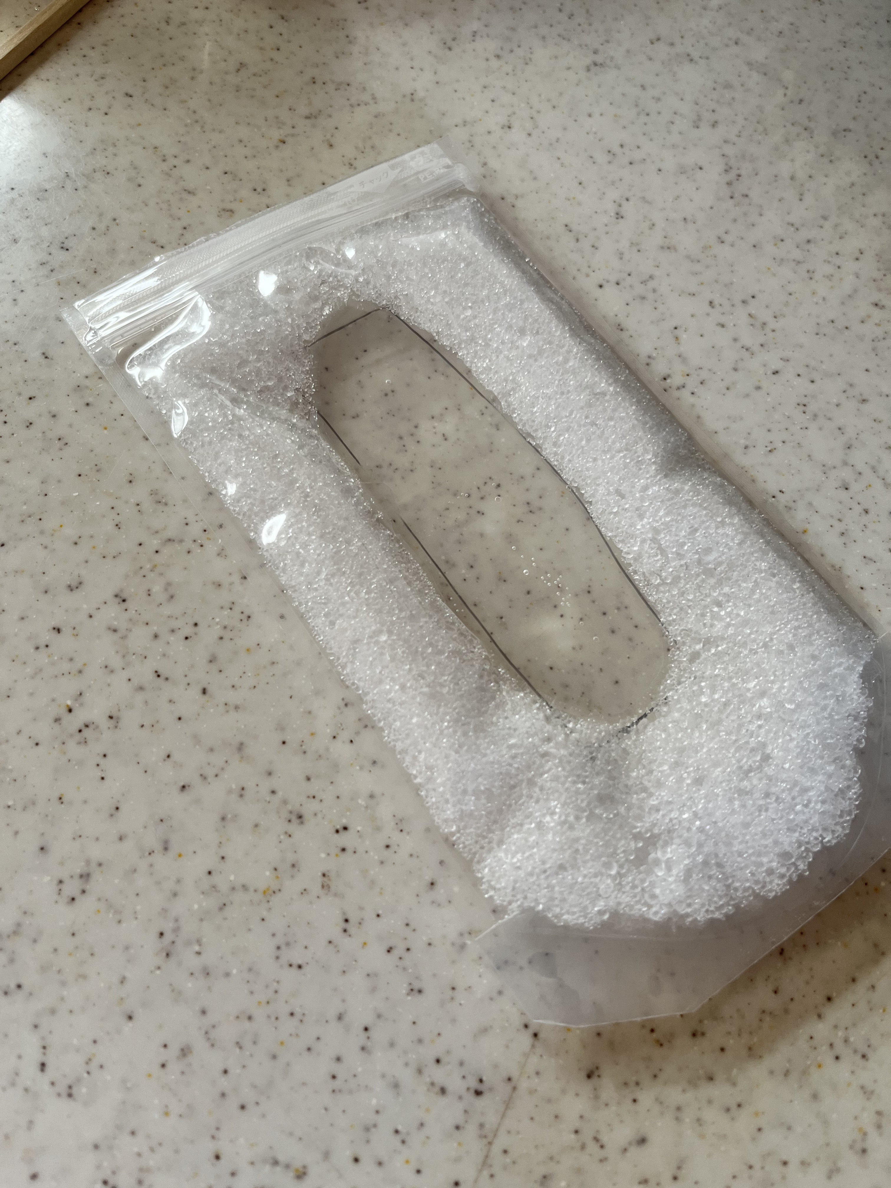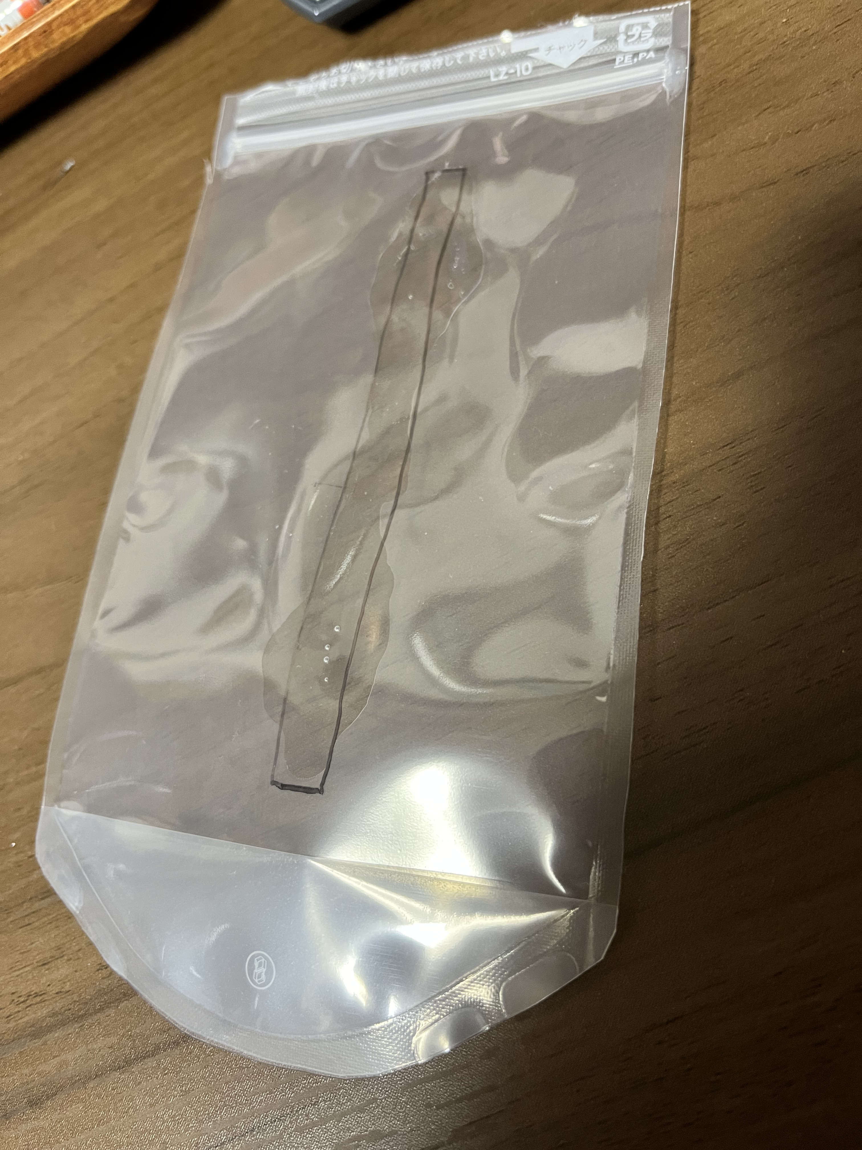 窓の面積(横幅は変わらずに縦の幅)を約半分にしたことでより酢酸ナトリウムの結晶を入れられるようにした。しかし、今回使用する袋が実験くんで使用されているサイズよりも大きい。なので記載の容量よりも多く中身を詰めないとまた中身がスカスカなものになってしまう可能性もあるので、分量については適宜確認しながら量を決めることにする。